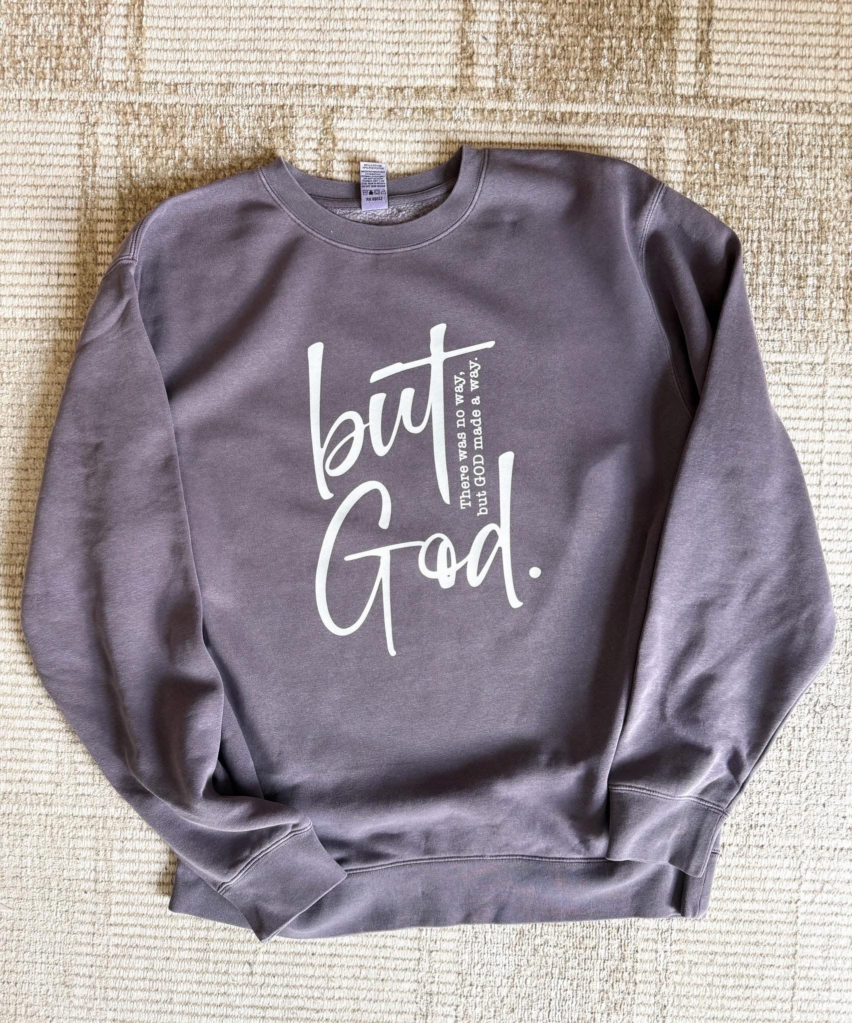 This isn’t just a sweatshirt—it’s your testimony in bold letters. When everything said it was over, BUT GOD stepped in.