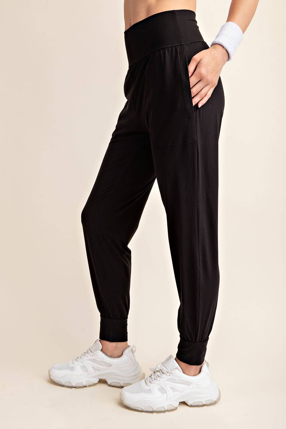 The Butter Joggers in Black combine comfort and style in a perfect fit. Made from butter-soft fabric, these joggers feature a waist band for a secure fit, side pockets for convenience, and a bottom band for a modern finish.