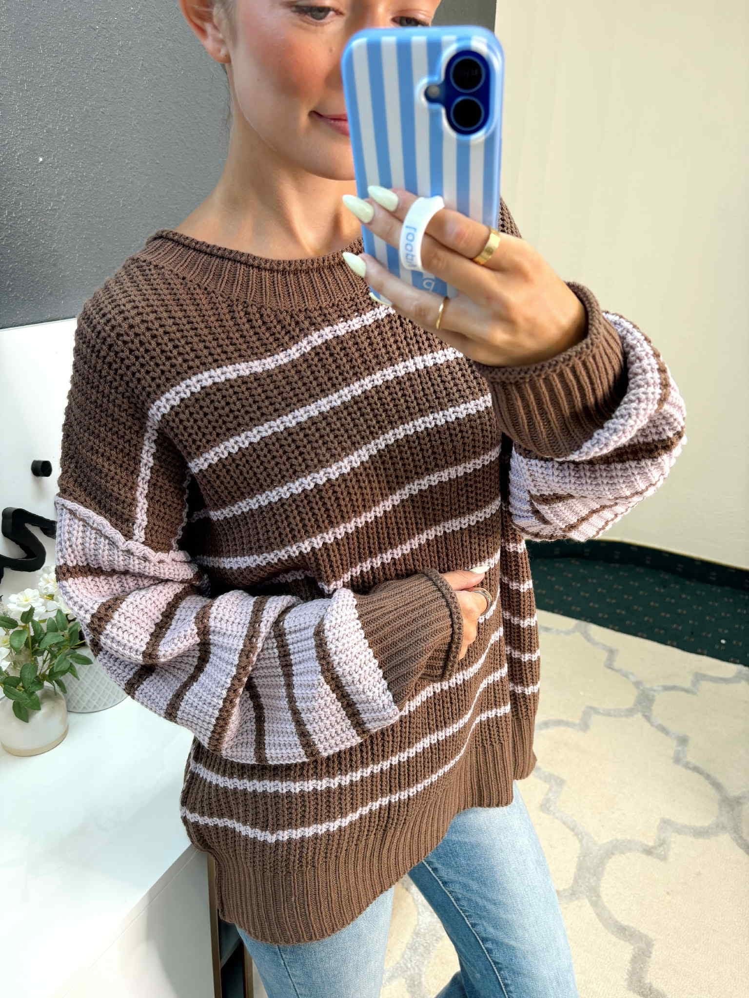 DREAMS COZY COCO LILAC STRIPE RELAXED SWEATER