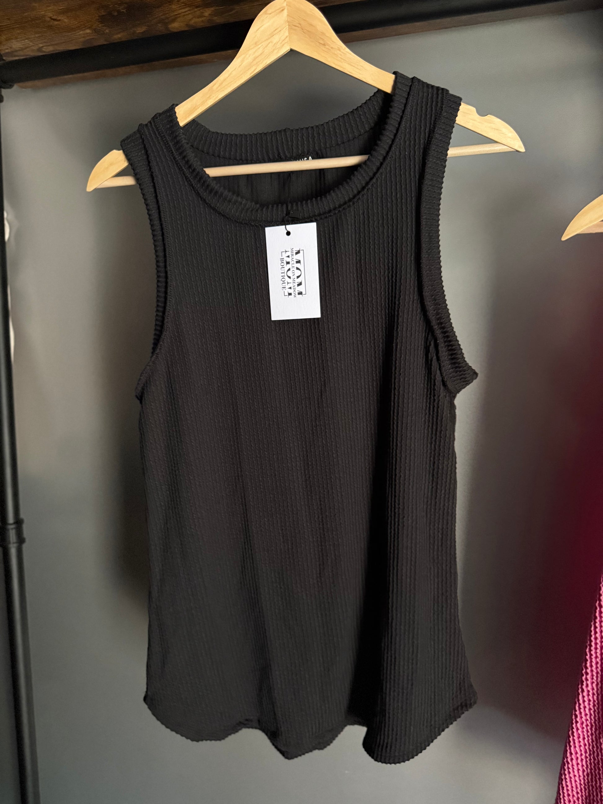 SLEEVELESS SOLID URBAN RIBBED TOP: Black