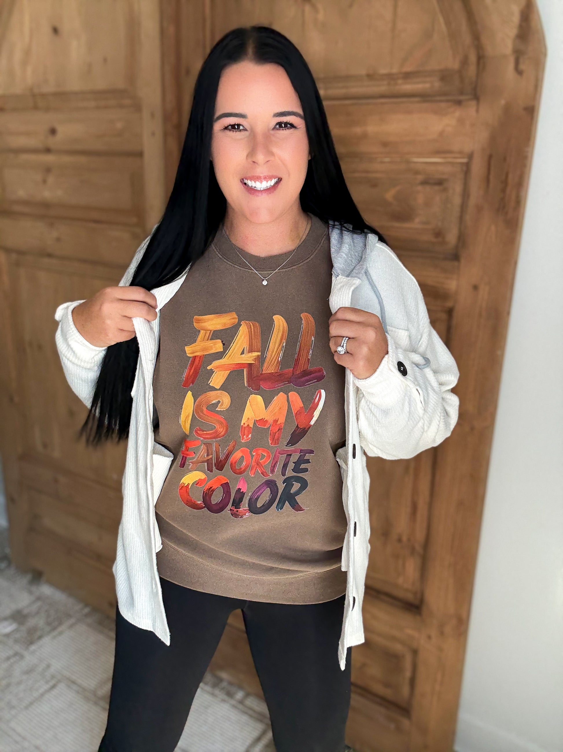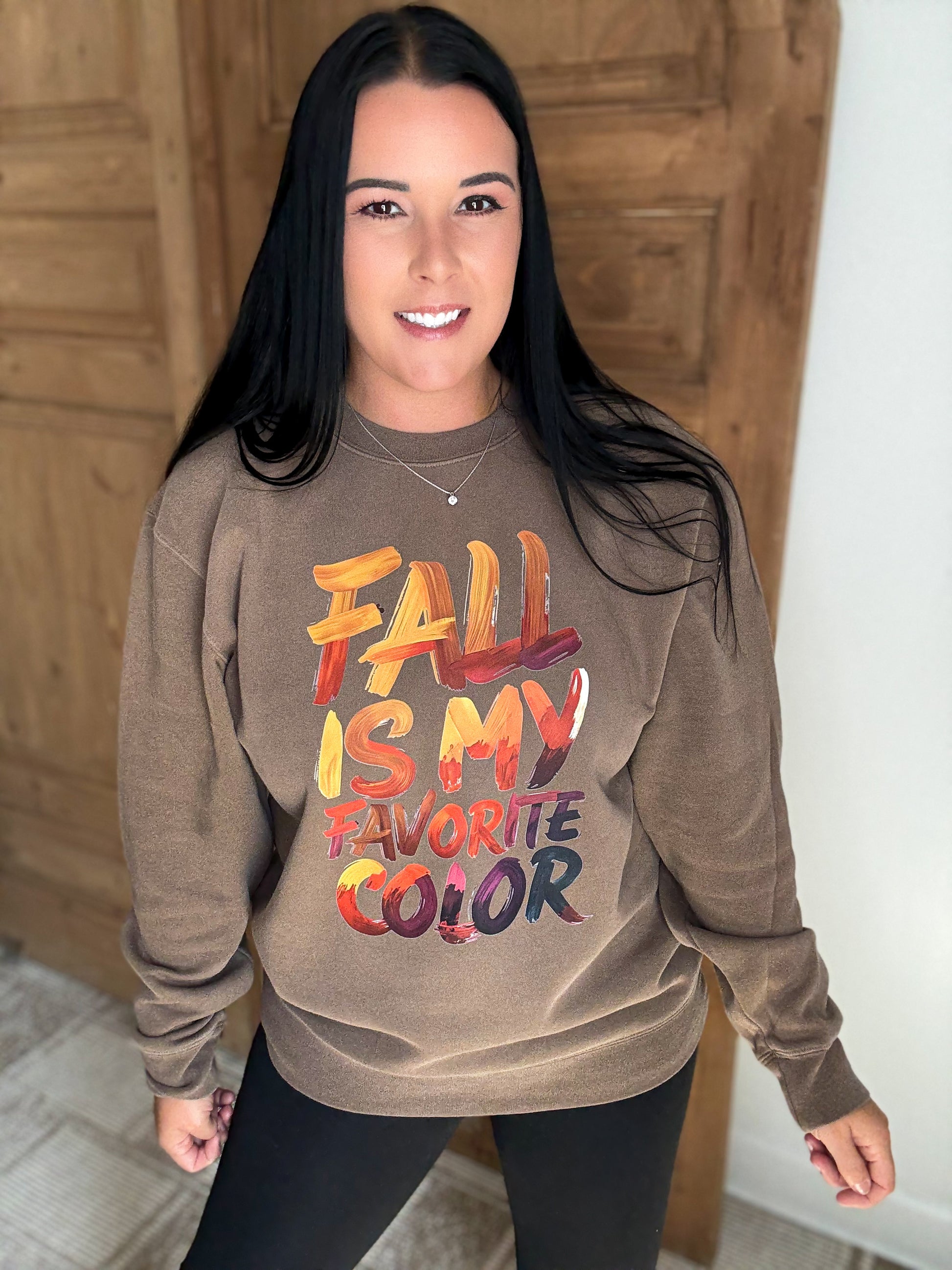 Wrap yourself in cozy autumn vibes with our best-selling "Fall Is My Favorite Color" crewneck. This fan-favorite sweatshirt features a soft, pigment-dyed finish for that perfectly lived-in look, complete with beautifully brushed paint-style lettering across the front that celebrates everyone's favorite season.
