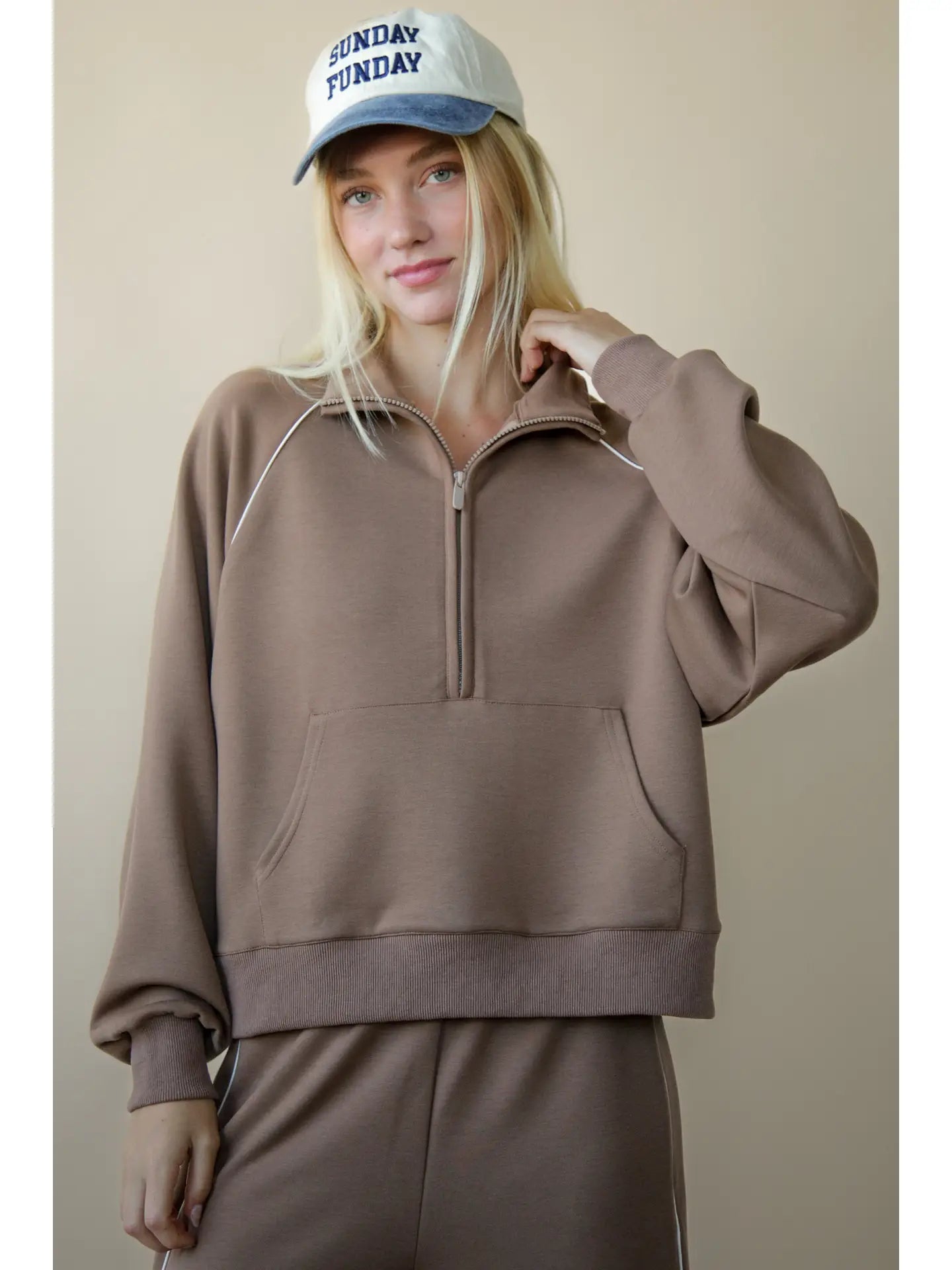 Half zip-up with piping detail