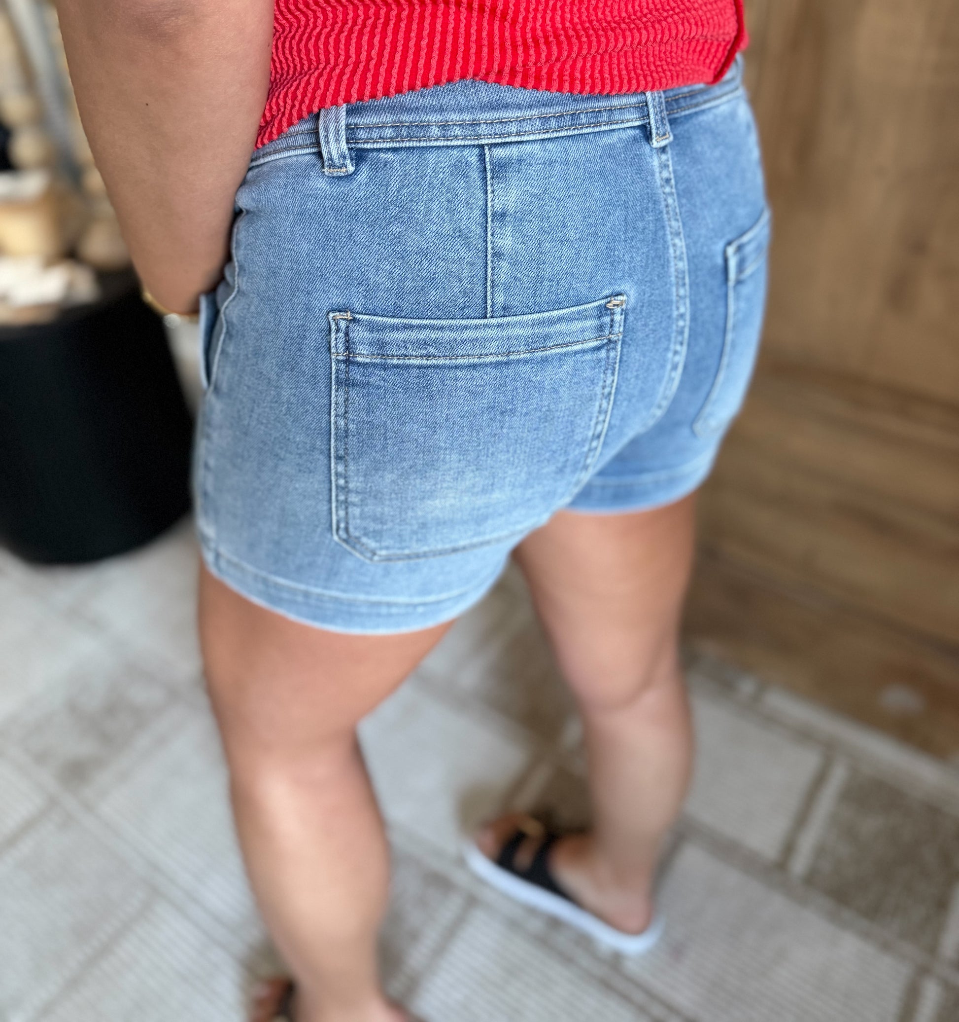 Experience the latest style with our High Rise Patched Front Pocket Shorts from Risen. These trendy and cute shorts feature a light washed design, perfect for any summer day. With a high rise fit and pocket details, you'll love the comfort and convenience these shorts provide. Shop now!