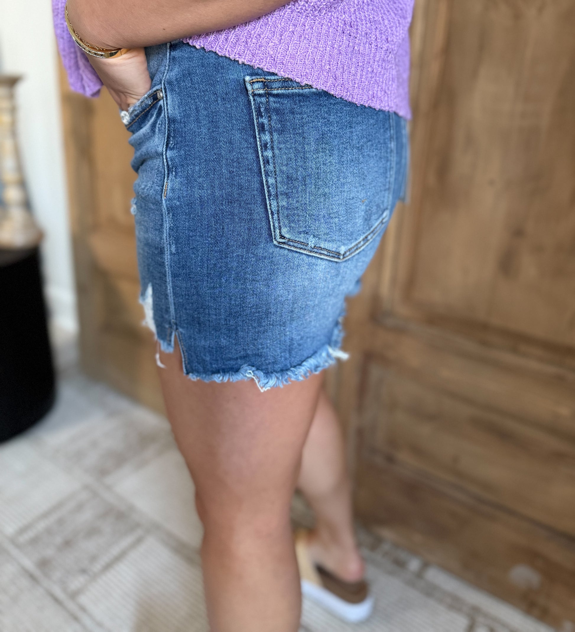 Get ready for summer with our HIGH RISE SIDE SLIT STEP HEM DETAIL SHORTS by RISEN. These cute and stylish shorts feature unique distress detail and side slit for added comfort. Perfect for any occasion, these shorts will keep you looking and feeling your best all season long!