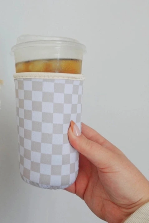 ICED COFFEE DRINK SLEEVE, BEVERAGE CUP SLEEVE: BEIGE CHECKER/MEDIUM/VENTI