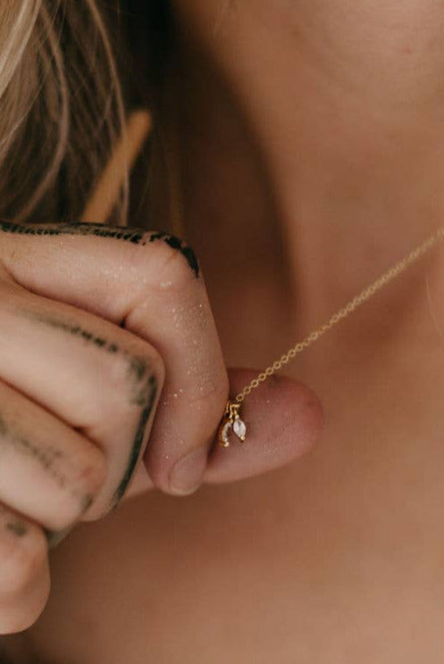 This necklaces is made of two tiny cubic zirconia drops. Chain and pendant are gold plated over brass. 18" Chain;['p bv0-po