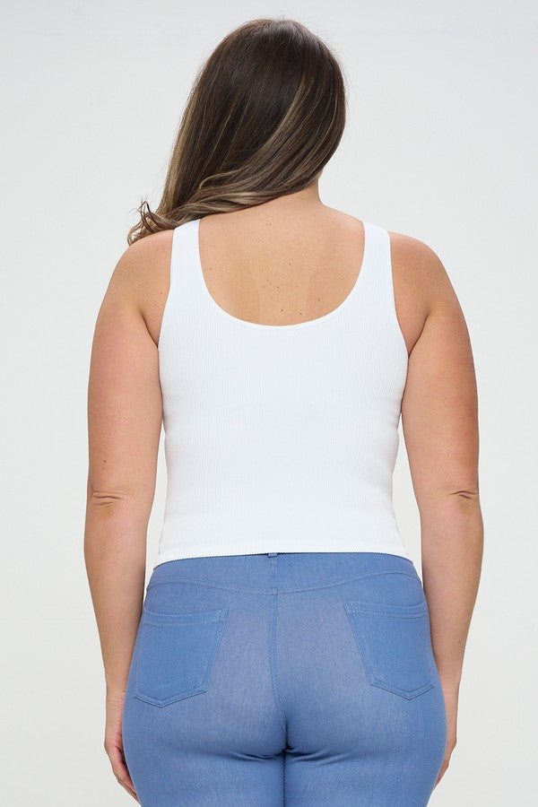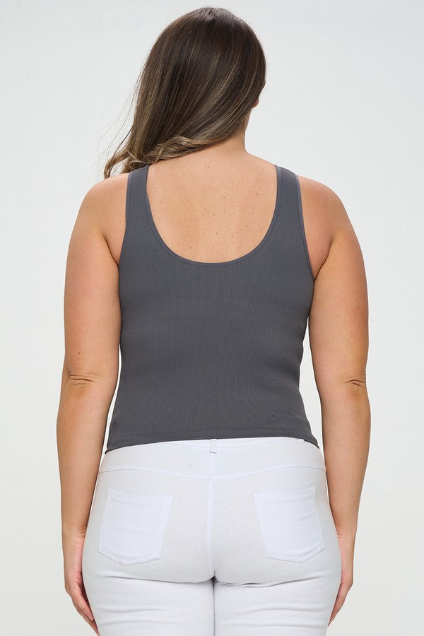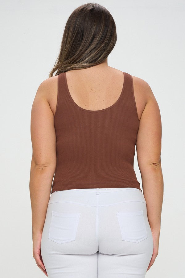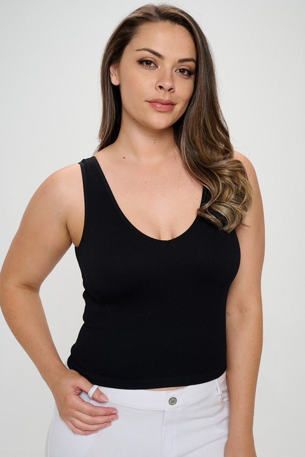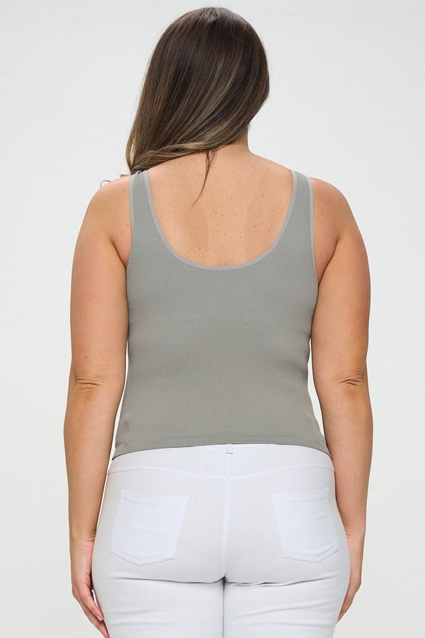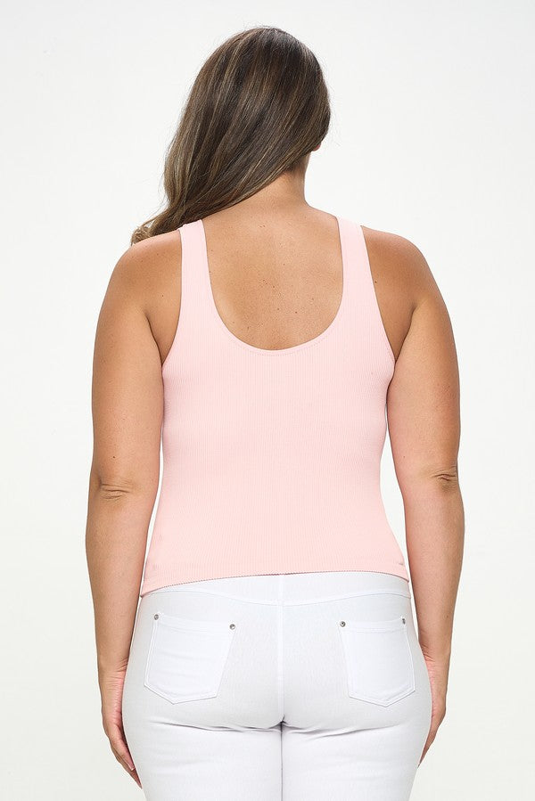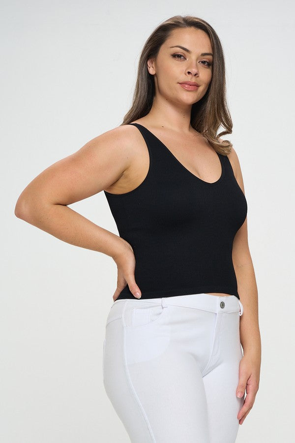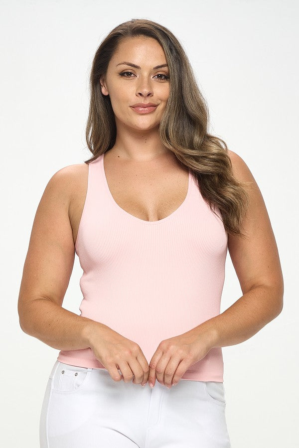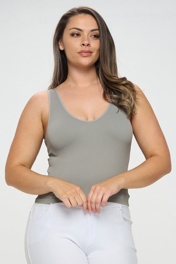 Introducing IT'S MAGIC EVERY OCCASION REVERSIBLE RIBBED SEAMLESS TANK. This tank is a must-have for every woman, with its extremely stretchy and flattering fit for sizes 0-22. Whether worn alone or layered, it offers buttery softness and a perfect length, making you feel your best.