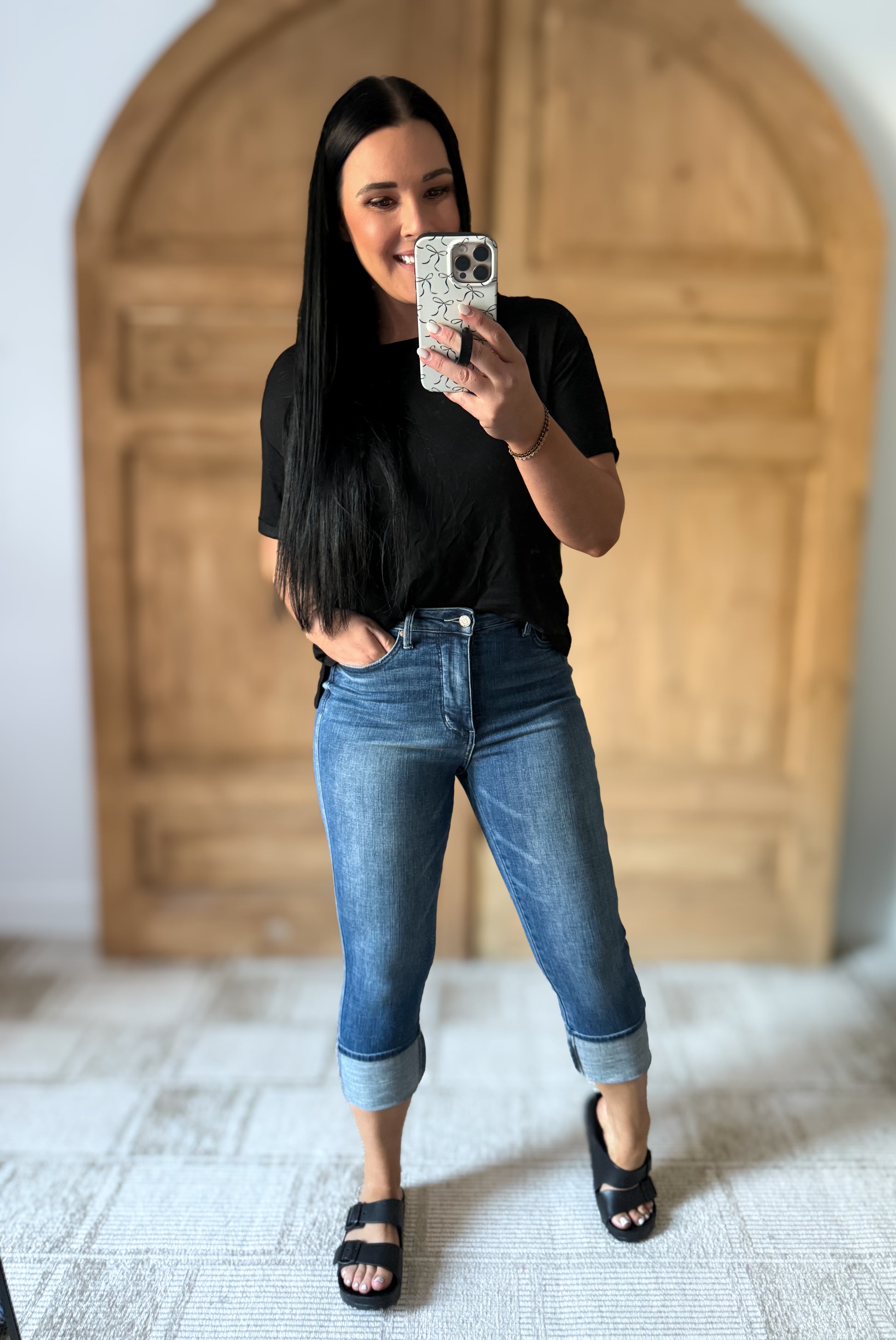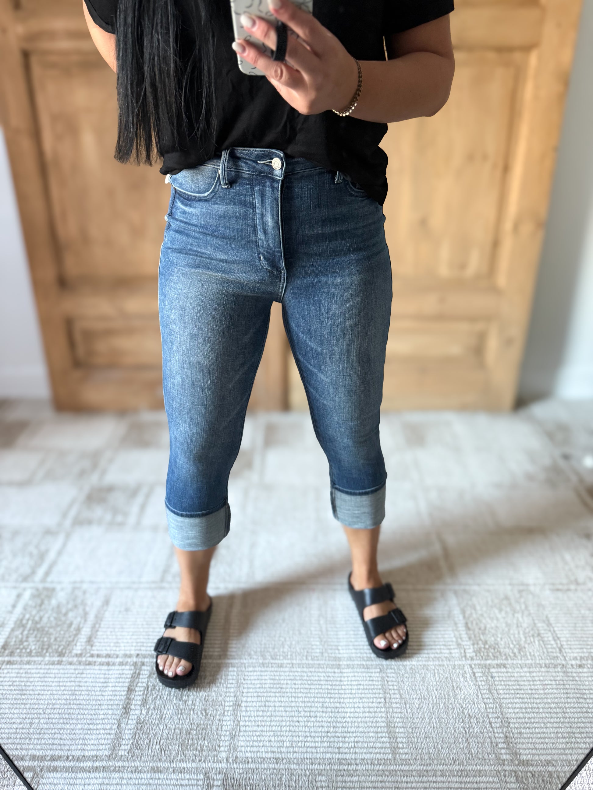 Judy Blue Full Size Skinny Cuff Capris Jeans with Pockets Plus Size Available