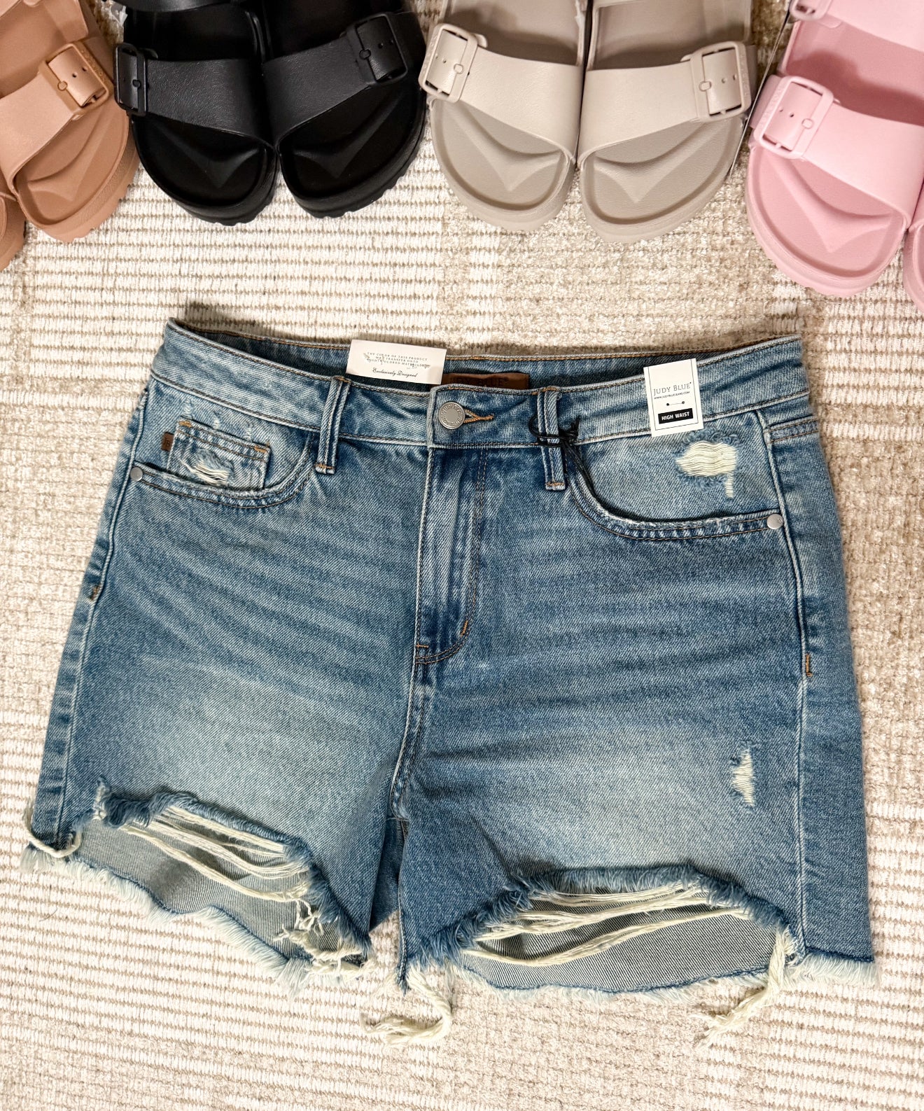 JUDY BLUE HIGH WAIST VINTAGE WASH FREY SHORTS