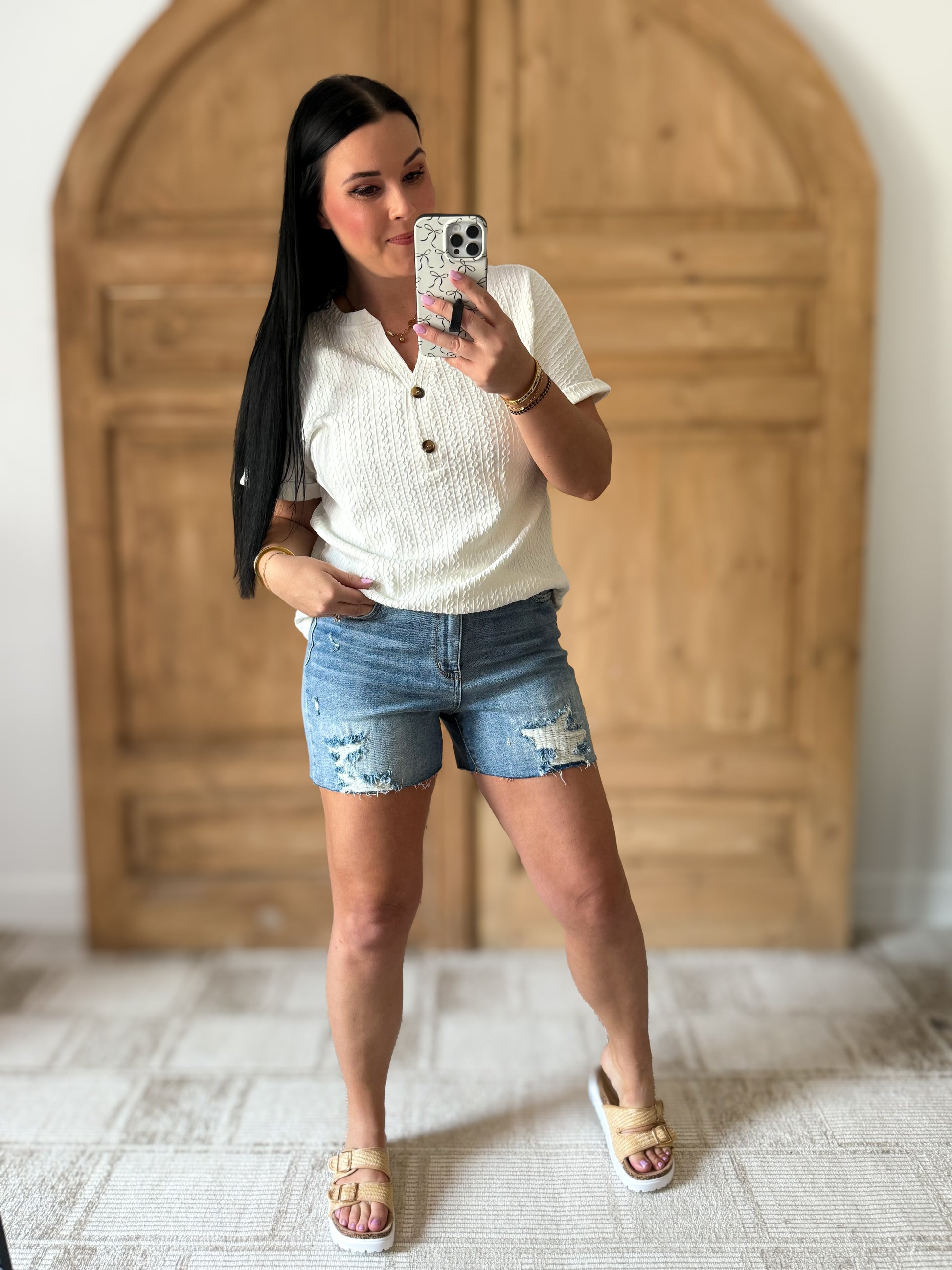 Get ready to turn heads with Judy Blue High Waist Destroy Stitch shorts. The stitch details and destroy accents add a unique touch, making these the hottest shorts of the season. Perfect for summer evenings, these shorts will give you a stunning glow and endless compliments.