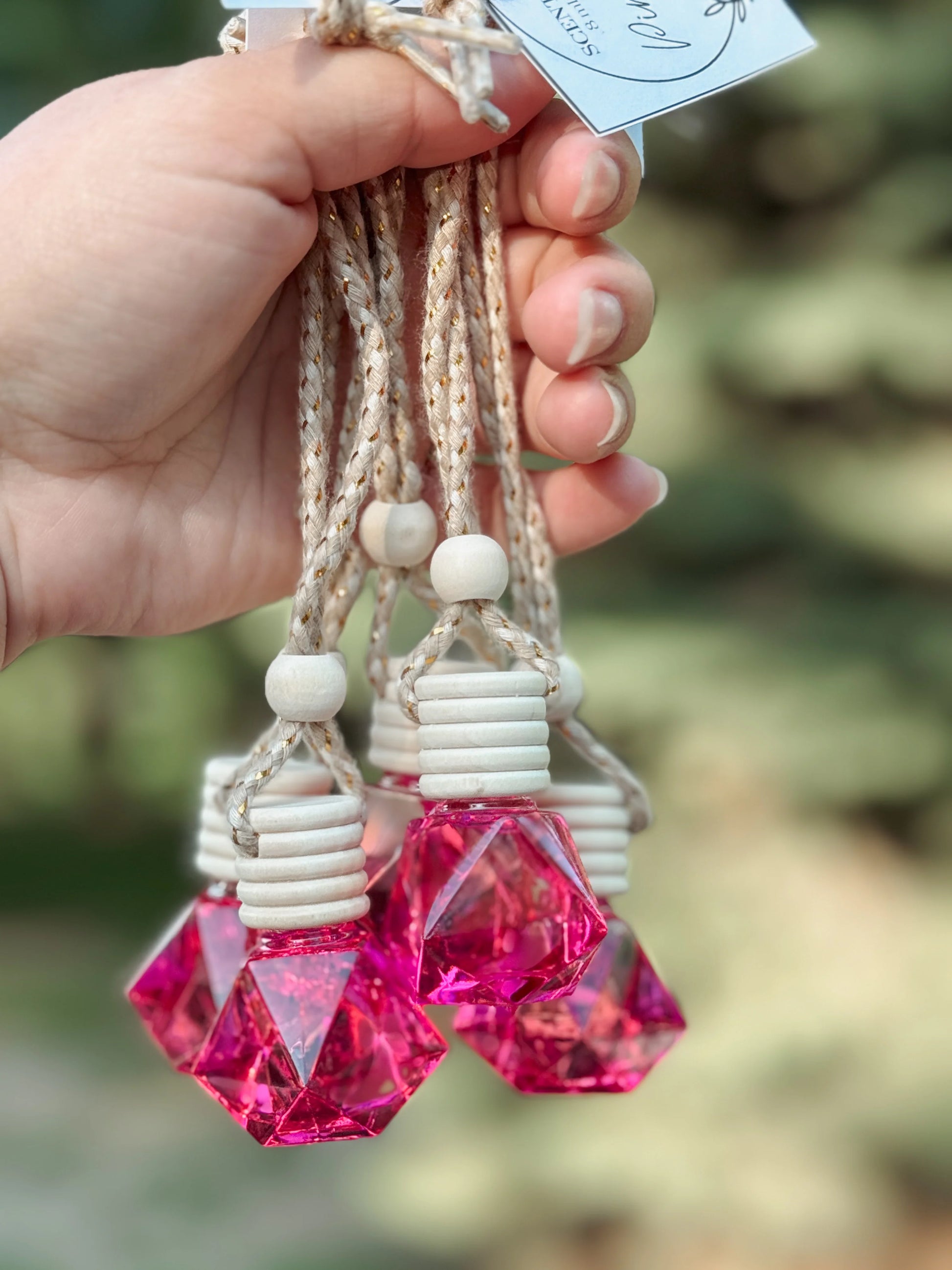 Introducing Charmed 8mL Car Diffuser, the perfect way to add a touch of luxury to your car. This elegant glass bottle is not only stylish, but also super easy to use. Simply twist the top off, remove the stopper, replace the lid, and then tip the bottle over for 1-2 seconds before flipping it back over and tying it to your car mirror. With many amazing scents to choose from, this car diffuser will have you coming back for more and buying for your friends. Enhance your driving experience with the delightful aroma.