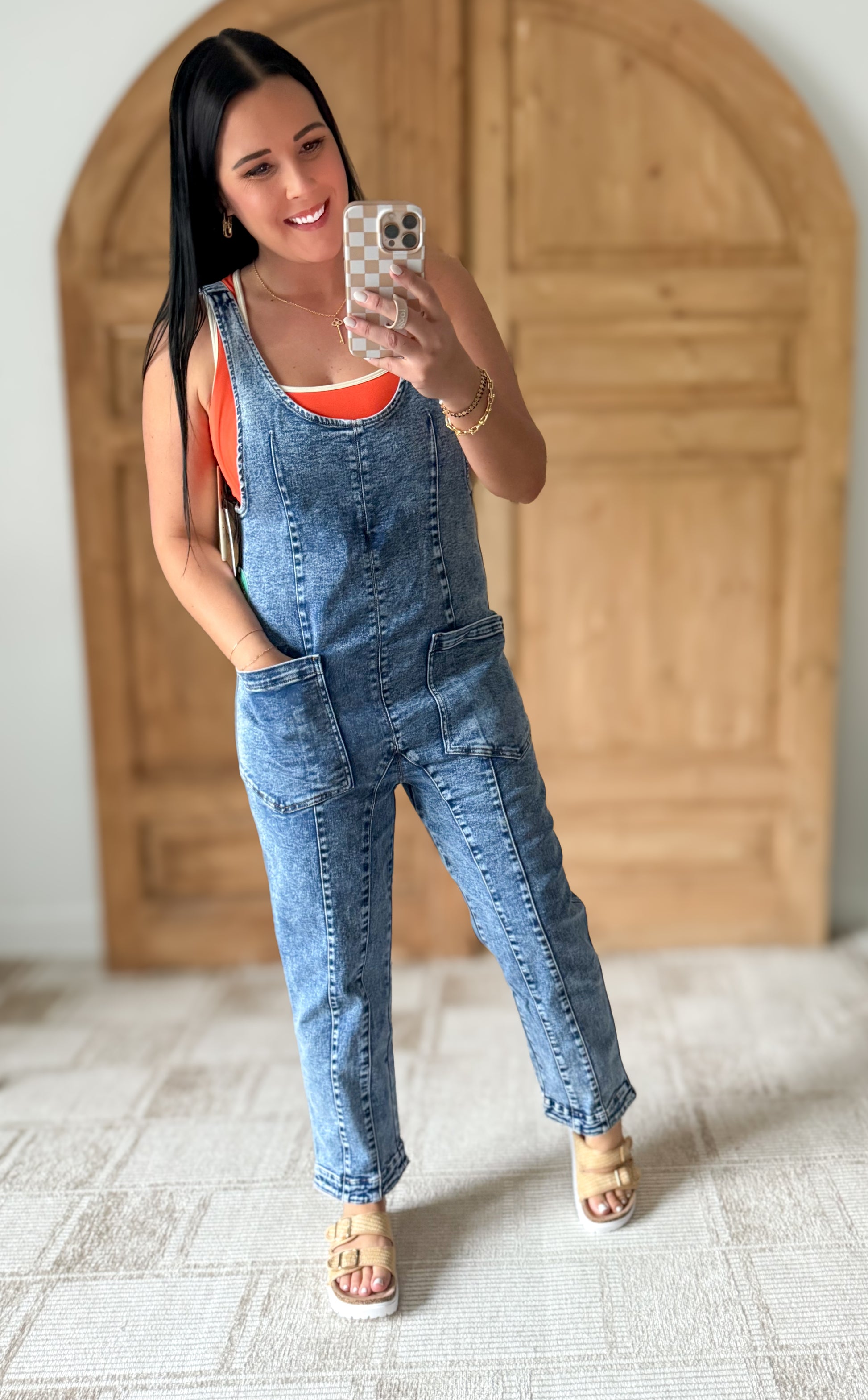 This trendy Romper is made with super stretchy high quality denim. Slouchy relaxed pull on style with oversized front patch pockets and adjustable back straps. These are SO comfy and true to size. You will be wearing them in every Season!