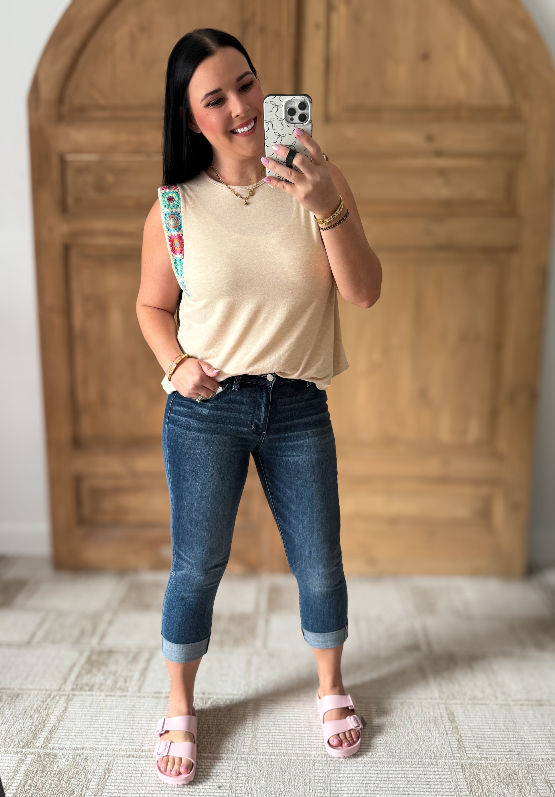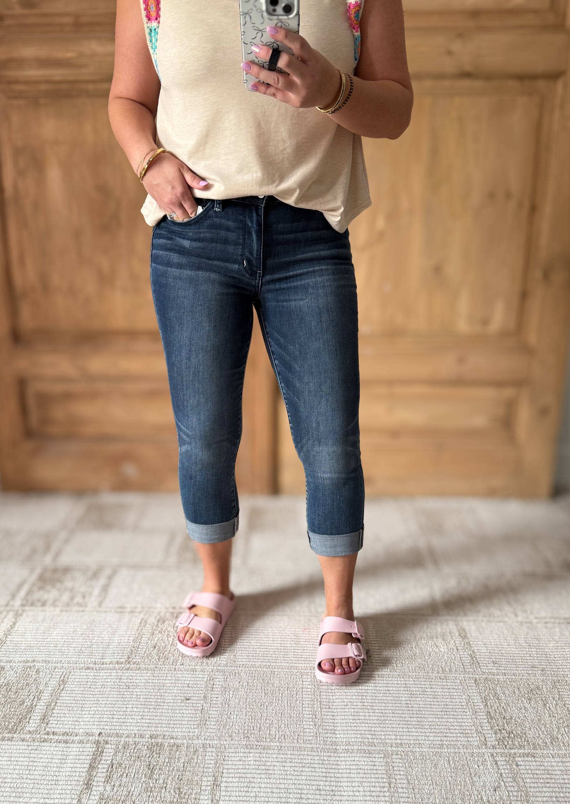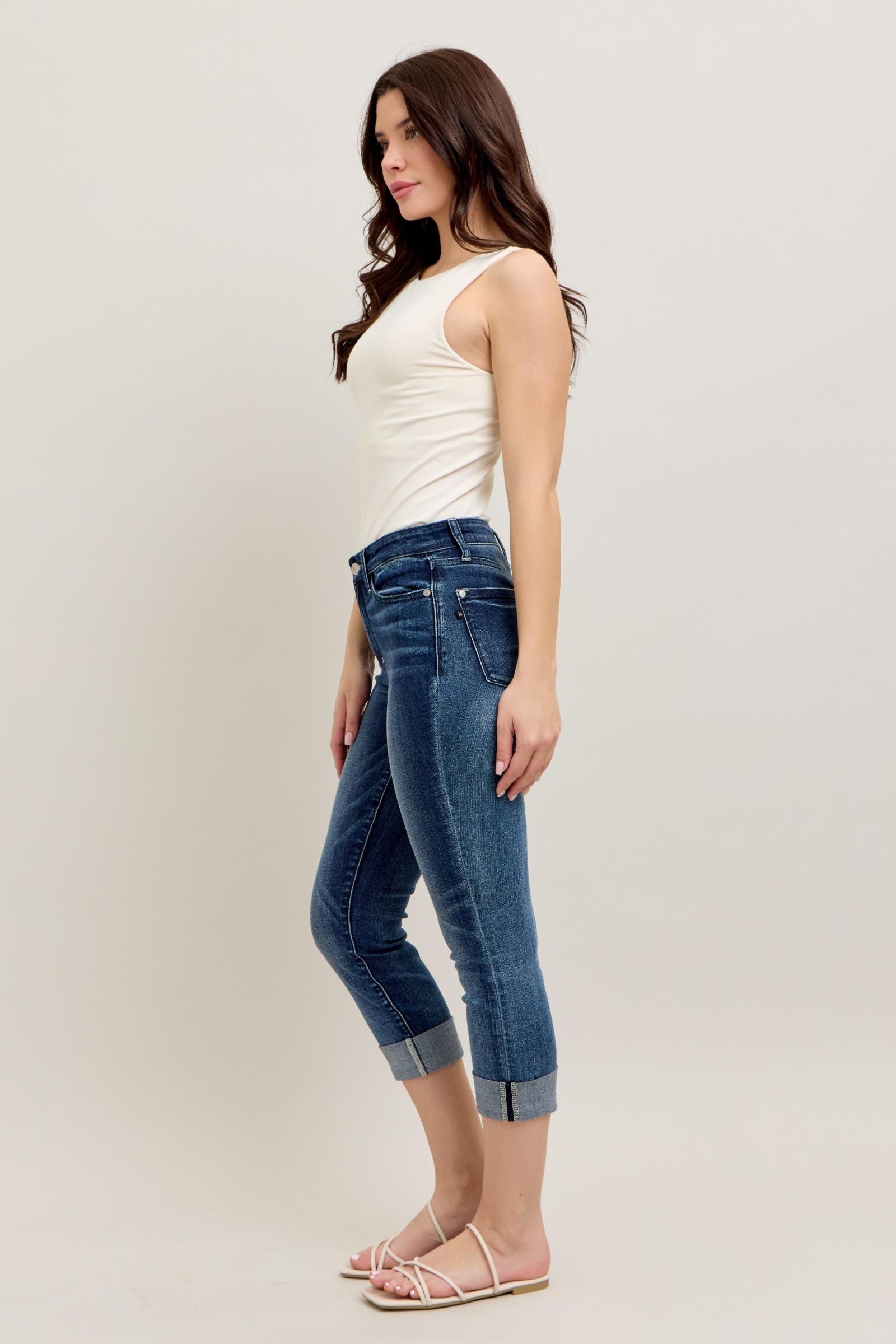 JUDY BLUE JESSIE MID RISE CUFFED CAPRI