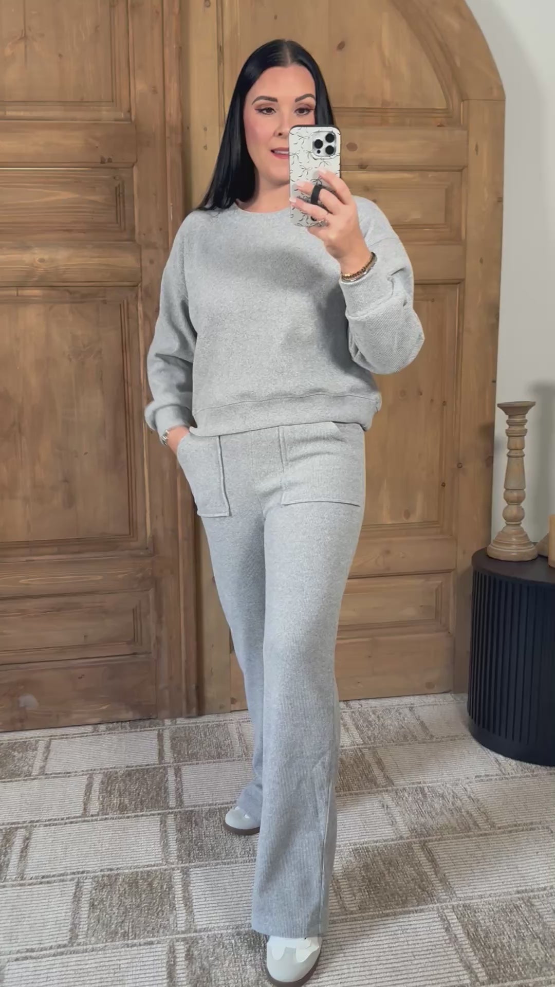 This ribbed set offers a relaxed, comfortable fit that's perfect for everyday lounging or running errands. Featuring dropped shoulders, ribbed cuffs, and a stylish curved hem, this set is loose and smooth for ultimate comfort. The bottoms are made of lightweight, breathable corduroy fabric with an elasticized high waist for a cozy yet stylish look. Get ready to fall in love with this go-to set!
