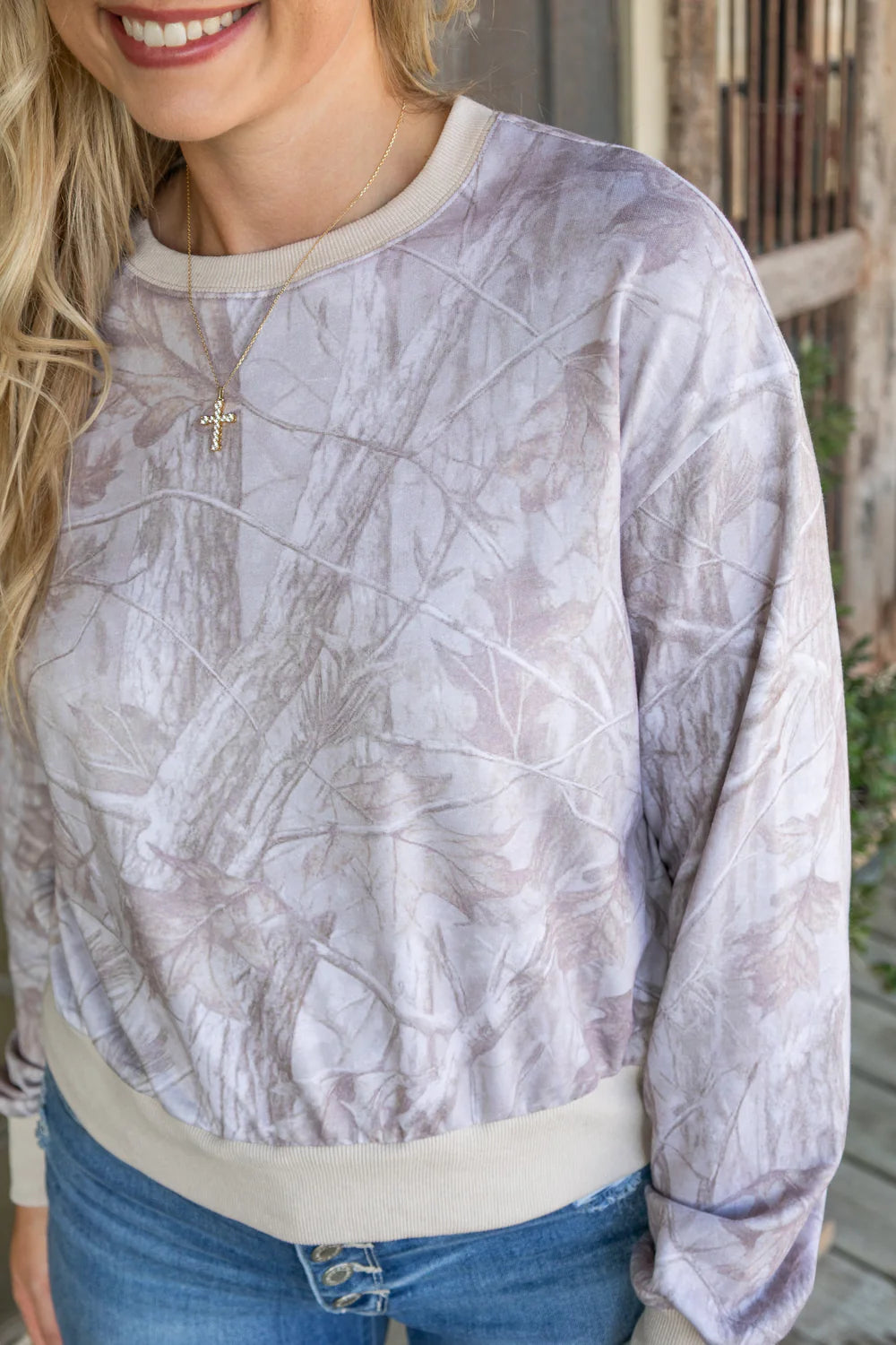 Stay cozy and stylish this season in our Light Wash Camo Sweatshirt. Designed with a soft, brushed feel, this sweatshirt offers a relaxed fit that’s true to size—perfect for everyday wear. Want a more oversized vibe? Simply size up for that effortless, laid-back look.