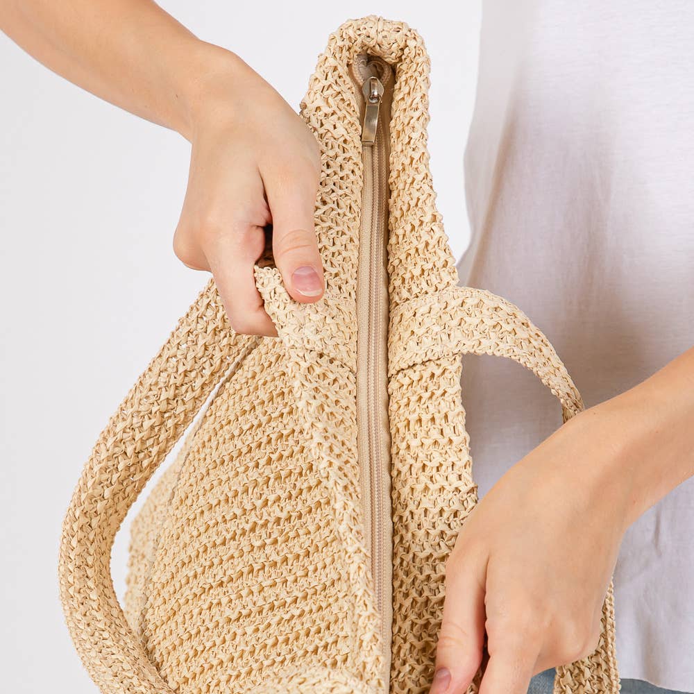 SOLID CROCHET STRAW TOTE BAG (MULTIPLE COLORS)