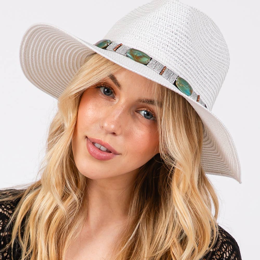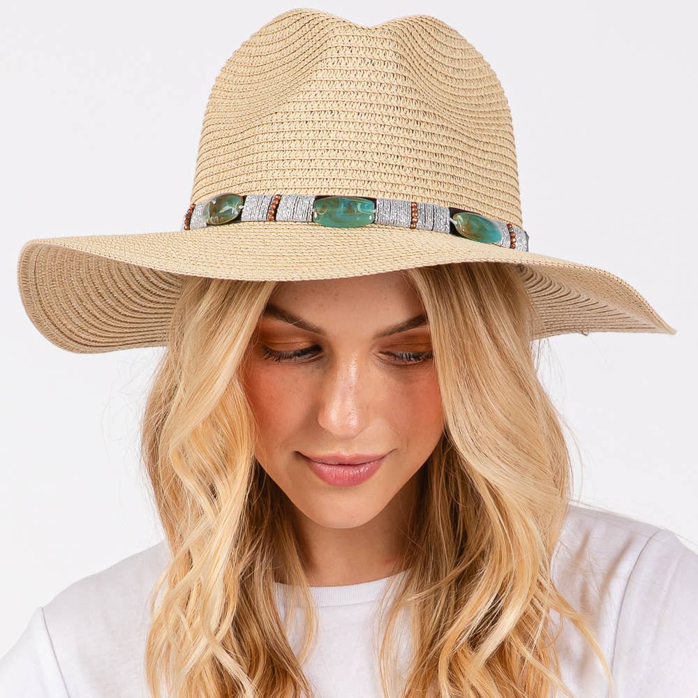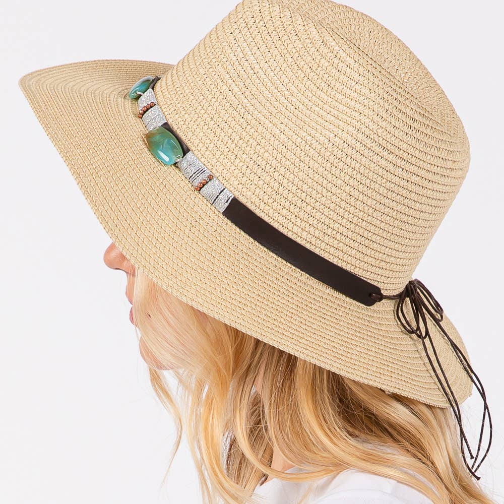 TURQUOISE BEADS BAND STRAW SUN HAT (MULTIPLE COLORS)