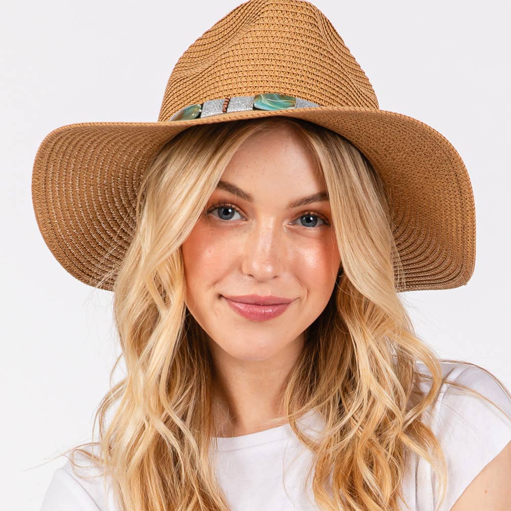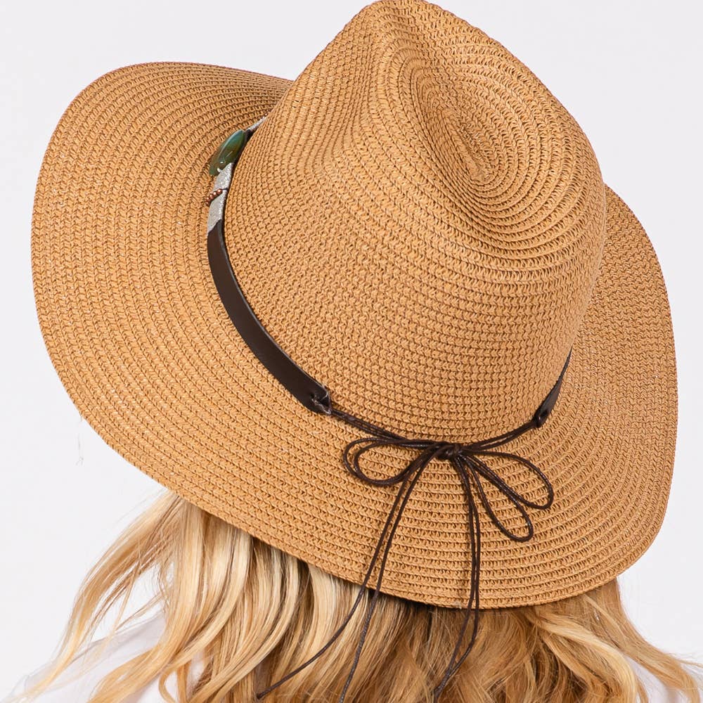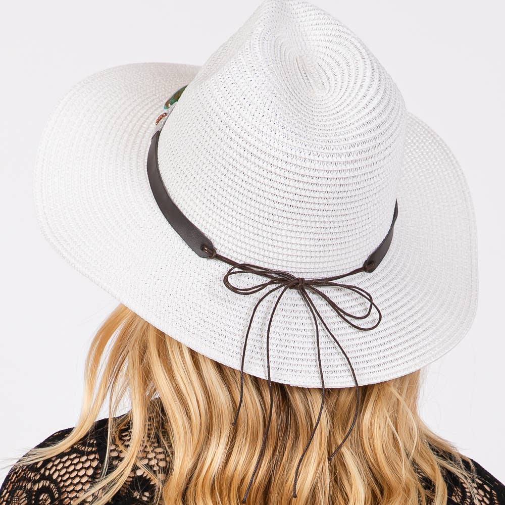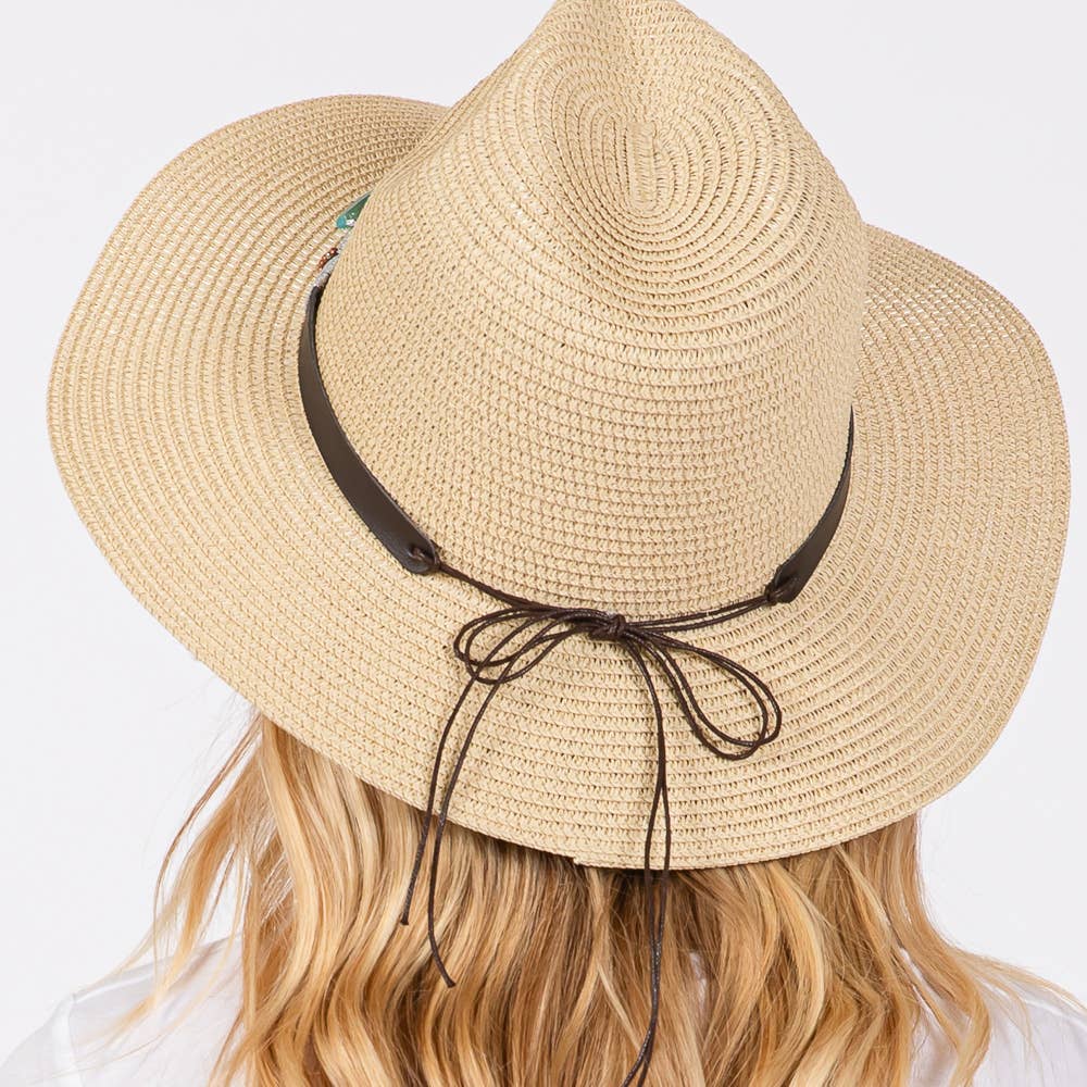 TURQUOISE BEADS BAND STRAW SUN HAT (MULTIPLE COLORS)