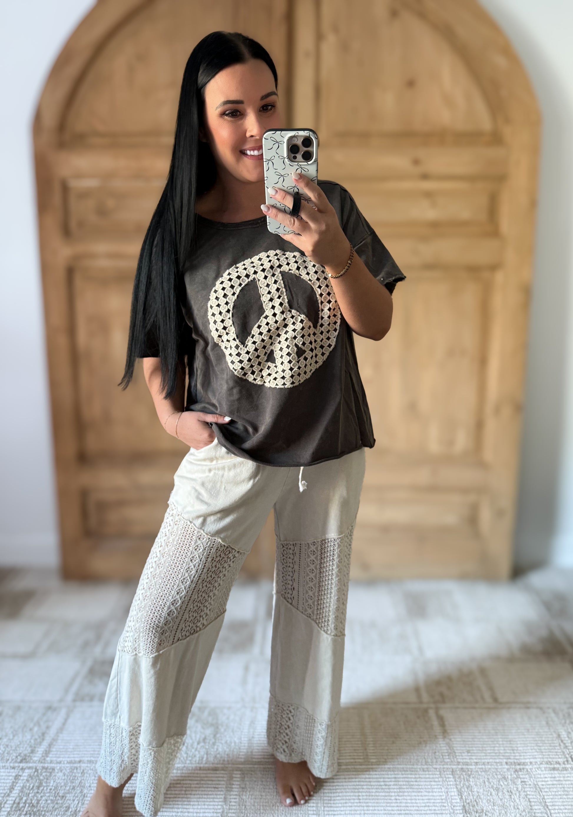 Upgrade your casual wardrobe with the Mineral Wash T-Shirt featuring Lace Applique. This stylish tee combines a trendy mineral wash finish with delicate lace applique detailing for a touch of elegance. Perfect for adding a feminine and unique flair to your everyday outfits. Embrace a chic and relaxed look with this versatile tee that offers both comfort and style.