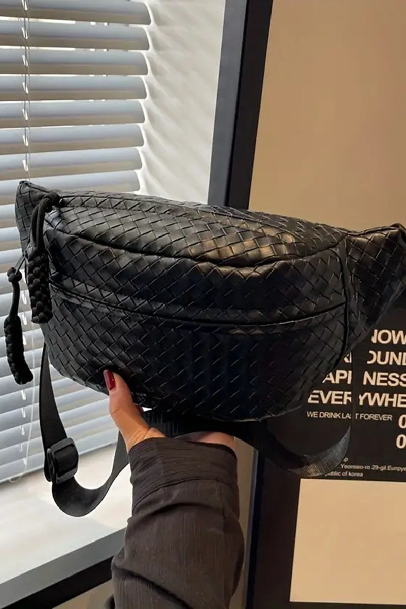 Enjoy the convenience and style of our VEGAN LEATHER WOVEN ATLAS CROSSBODY BUM BAG BLACK. With plenty of room, this light-weight bag is perfect for year-round use. The adjustable strap provides a comfortable fit, making it the perfect choice for all your on-the-go needs. Stay organized and stylish with our woven bun bag.
