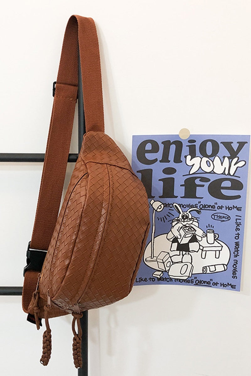 Enjoy the convenience and style of our VEGAN LEATHER WOVEN ATLAS CROSSBODY BUM BAG BLACK. With plenty of room, this light-weight bag is perfect for year-round use. The adjustable strap provides a comfortable fit, making it the perfect choice for all your on-the-go needs. Stay organized and stylish with our woven bun bag.