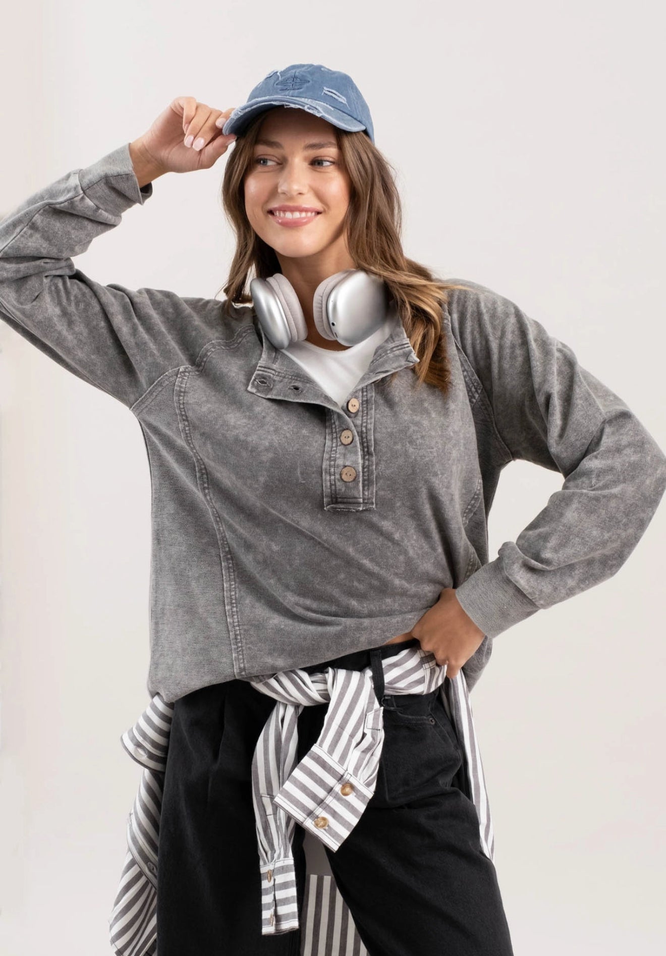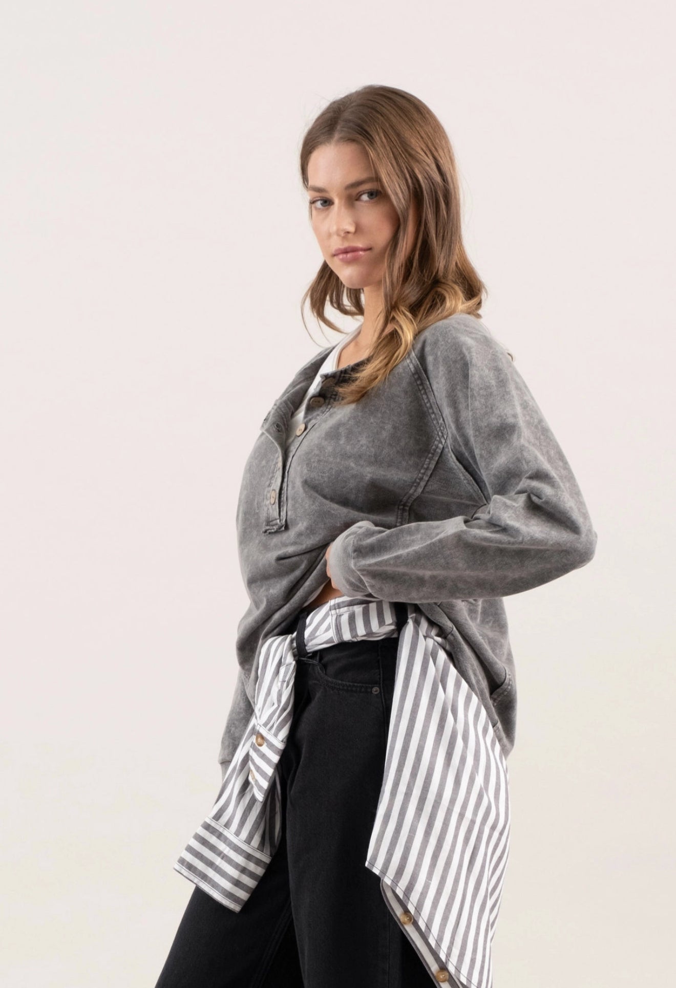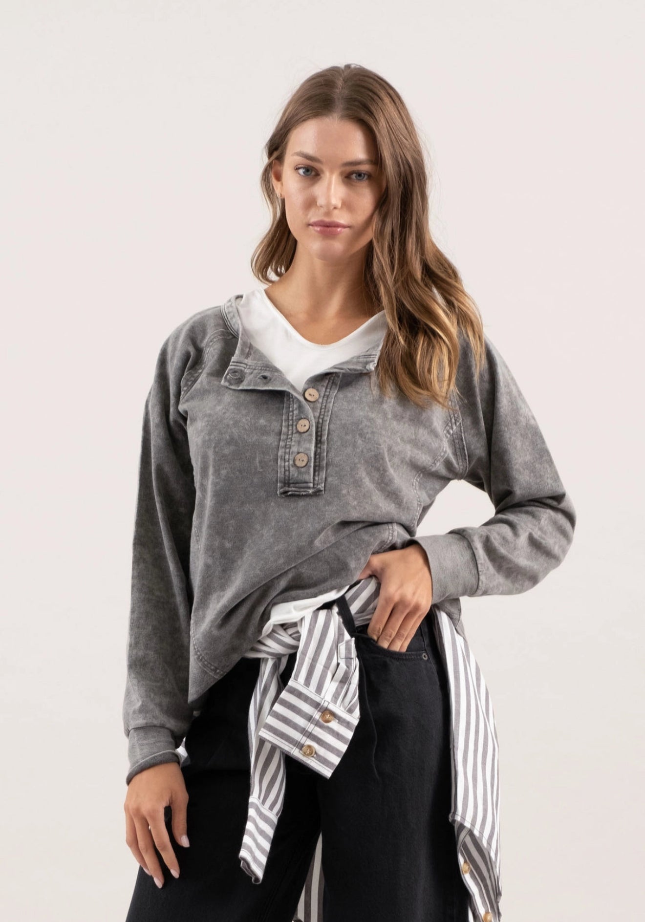 WASHED HENLEY RAGLAN LONG SLEEVE TOP