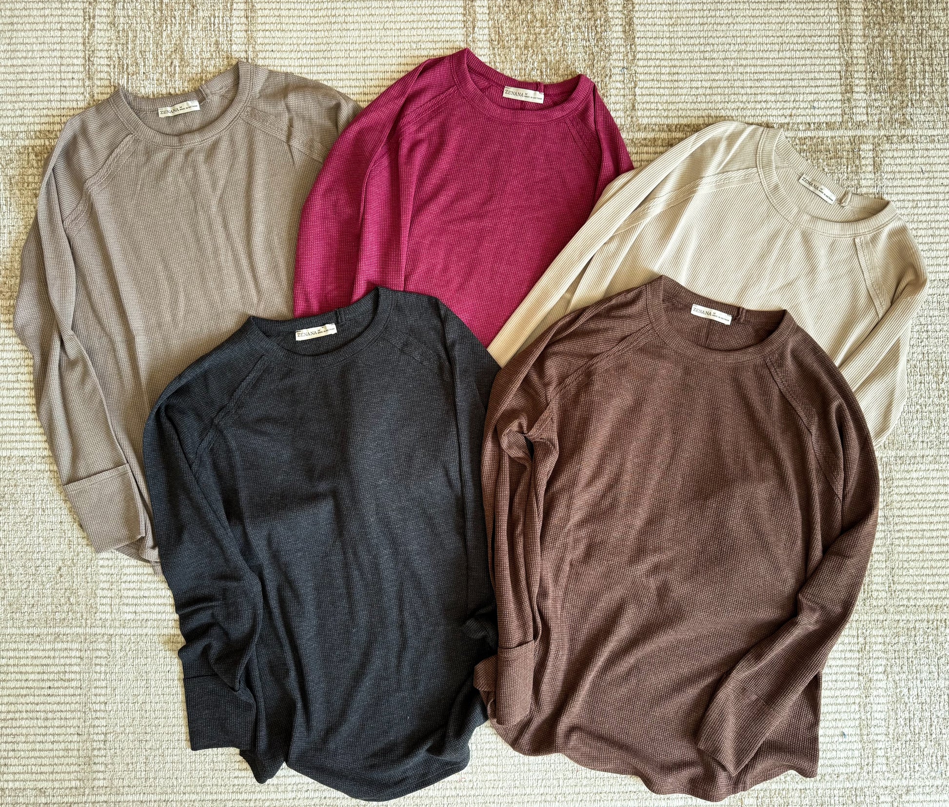 ZENANA WAFFLE SOFT STRETCHY LONG SLEEVE-*Multiple Colors